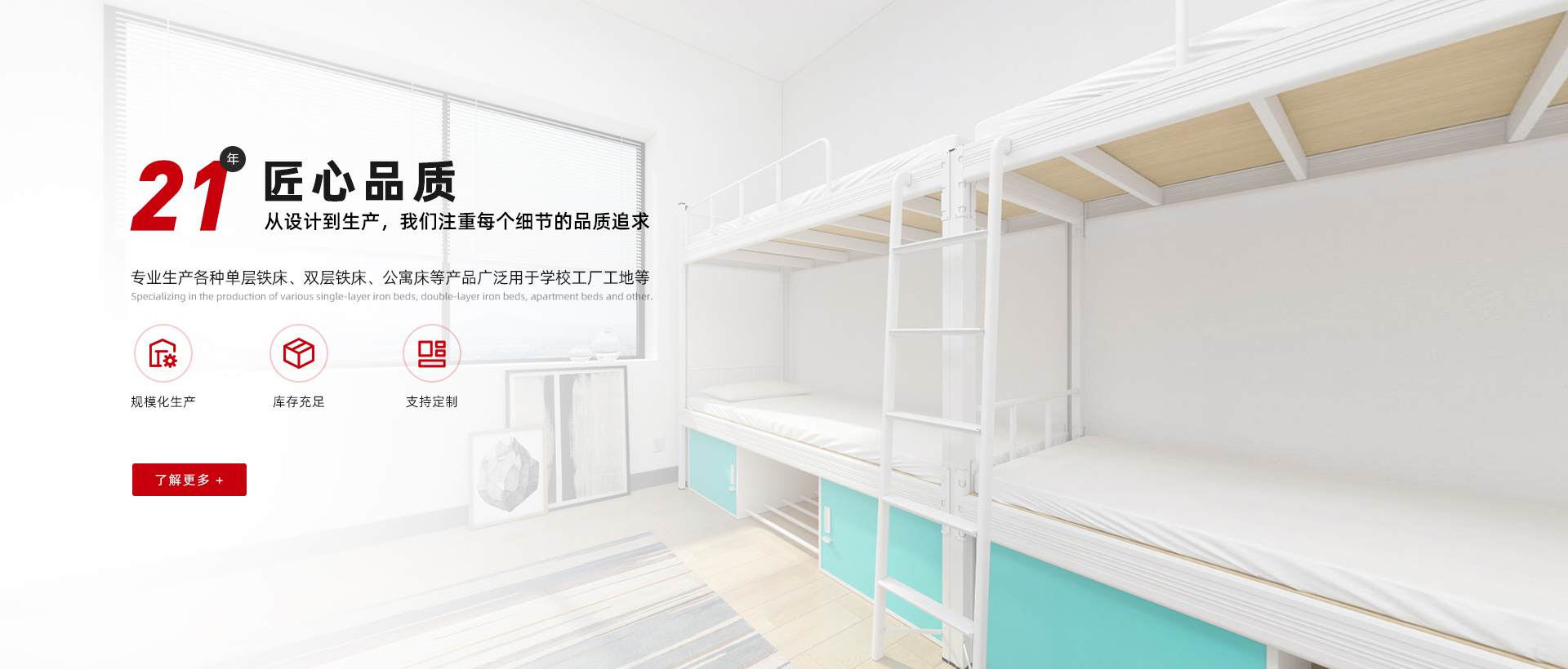 選擇冠迪五金鐵床的 理由 現(xiàn)代化生產(chǎn)制造企業(yè),為超過1000企業(yè)單位提供公寓宿舍鐵床鐵柜整體解決方案